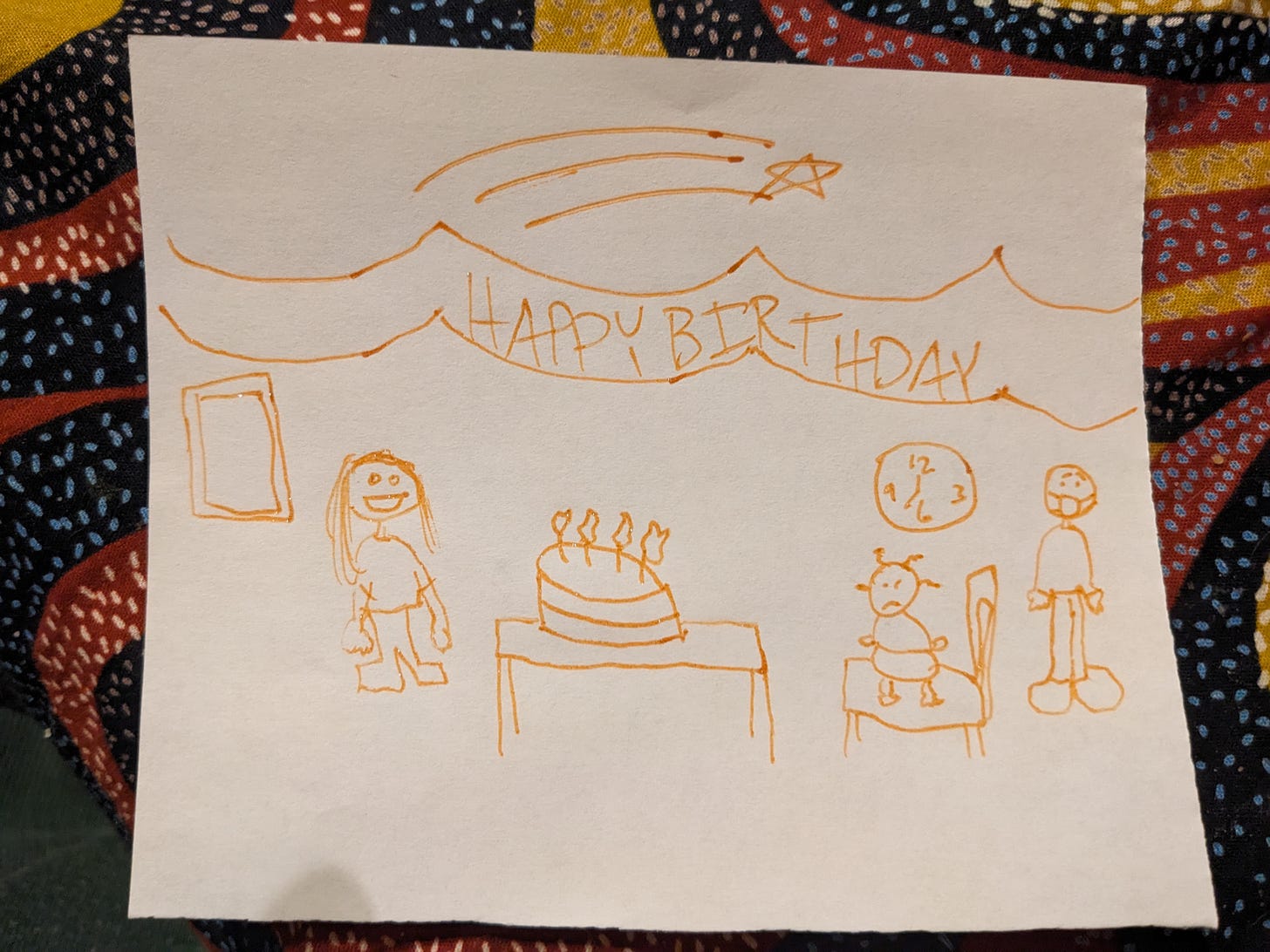 Ben captured birthday parties of the past. From left to right: me yesterday, Fiona at her 2nd birthday standing on a chair, Ben at her 1st birthday with a mask on.