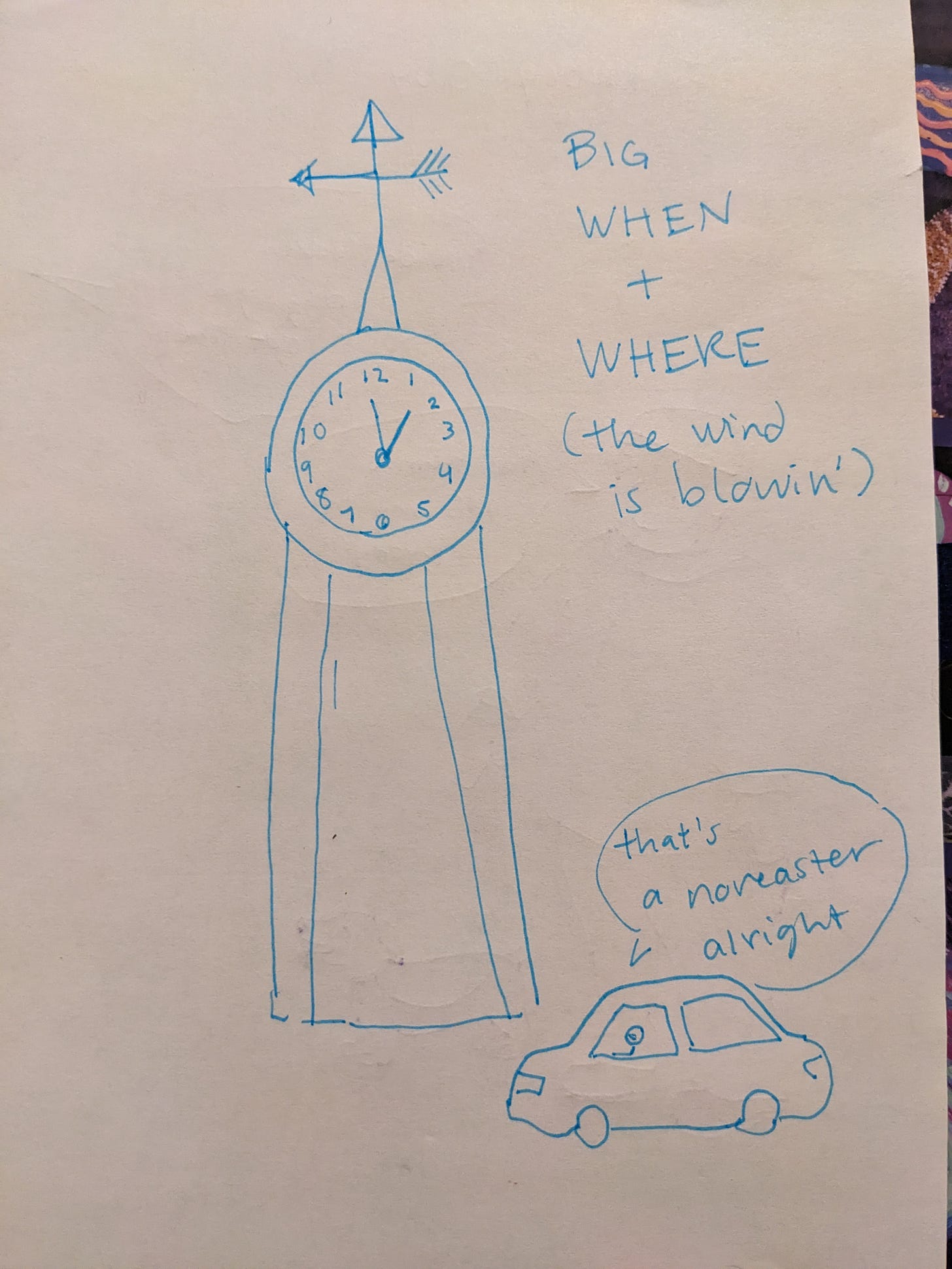 One night Fiona suggested a clocktower. I got really confused and thought they might have weathervanes on top? Do they?? This one does.