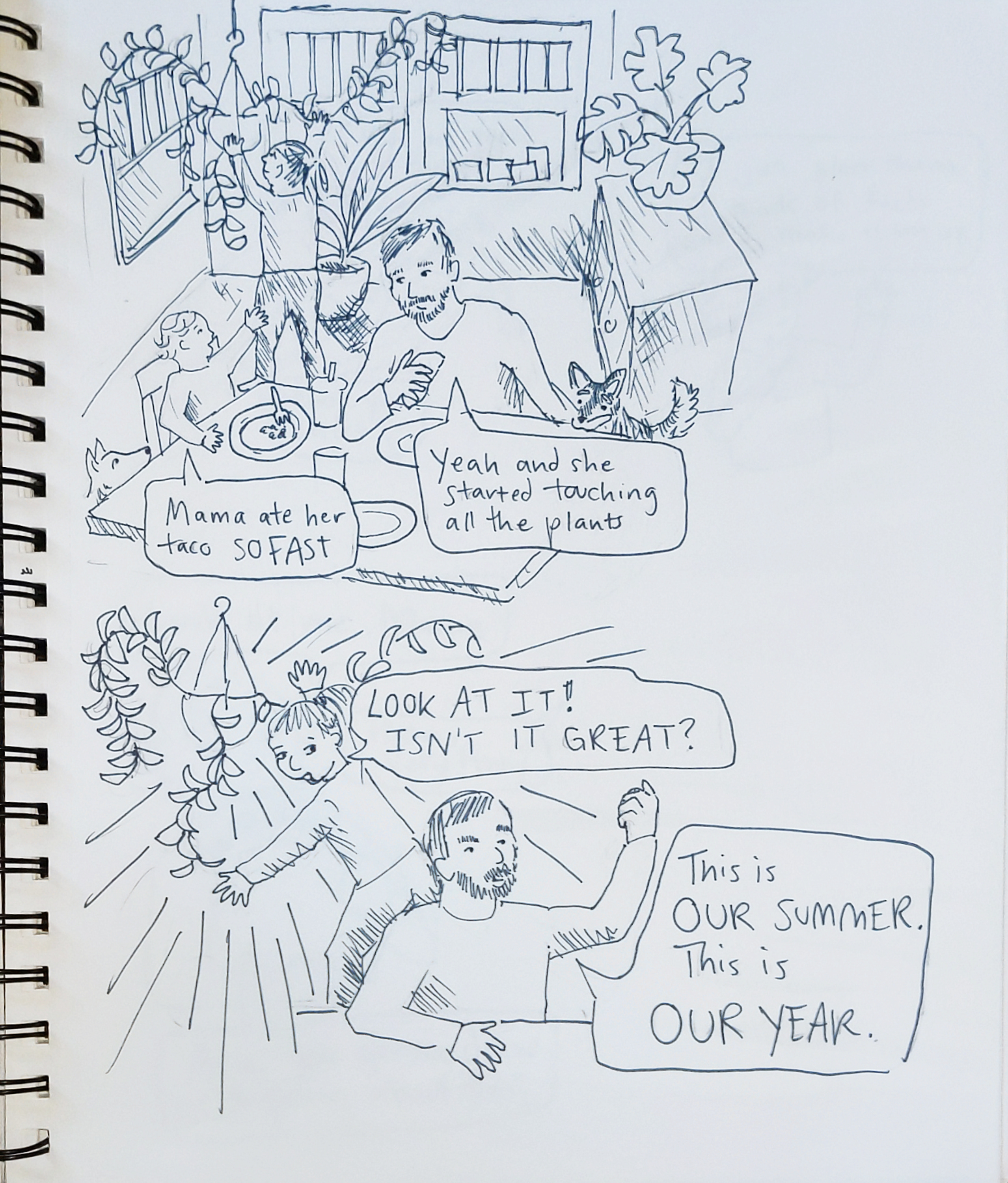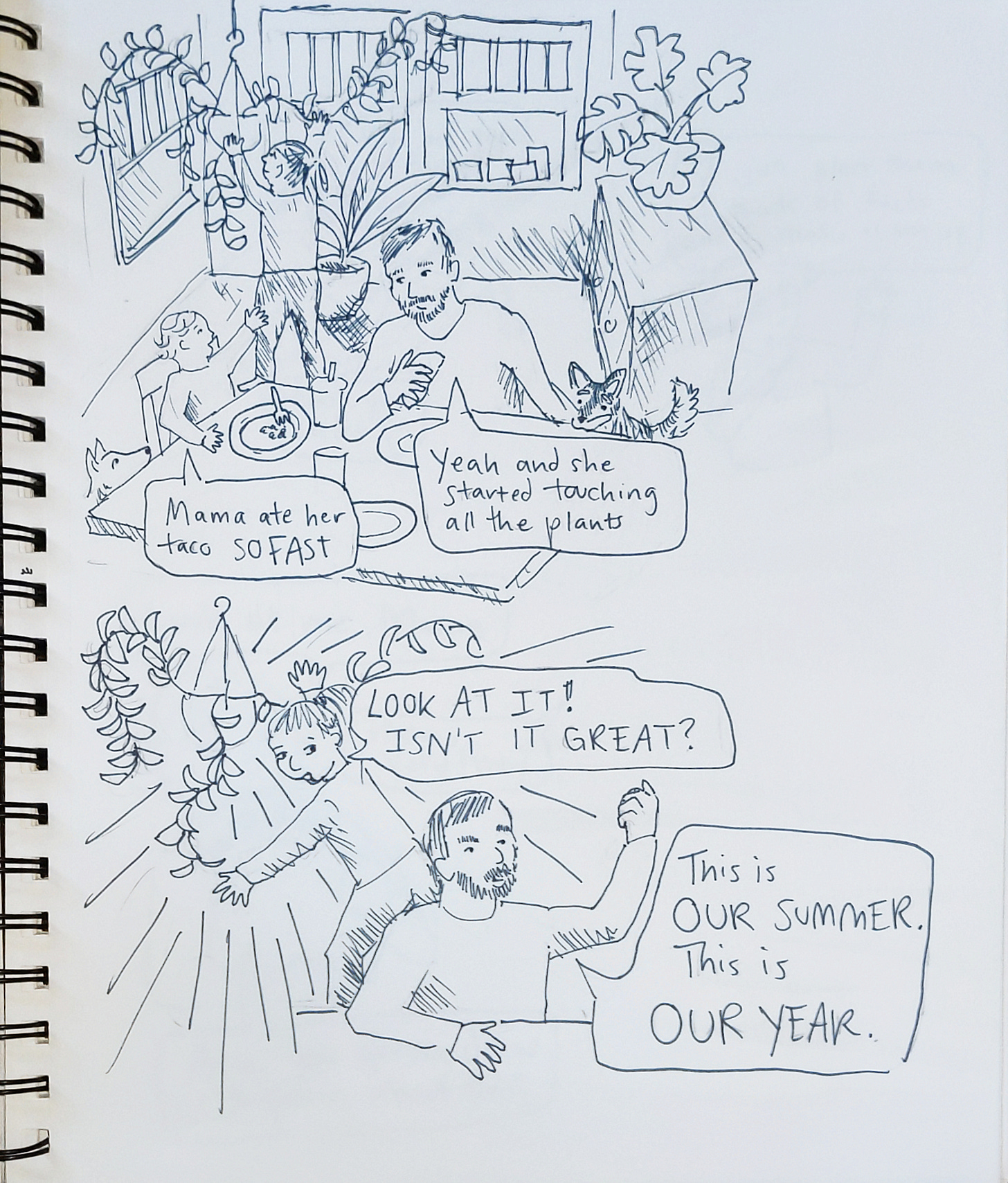 We look at my sketchbook a lot together as a family. Every time I draw something new, Fiona loves looking at the old pages all over again (especially the ones about stuff she’s said). Looking back at the past few months, I’m filled with desire to share some of what’s inside.